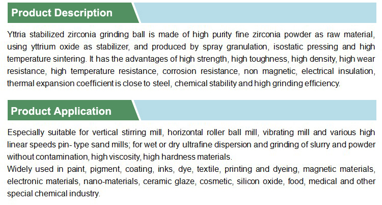 Yttria Stabilized Zirconia Grinding Ball